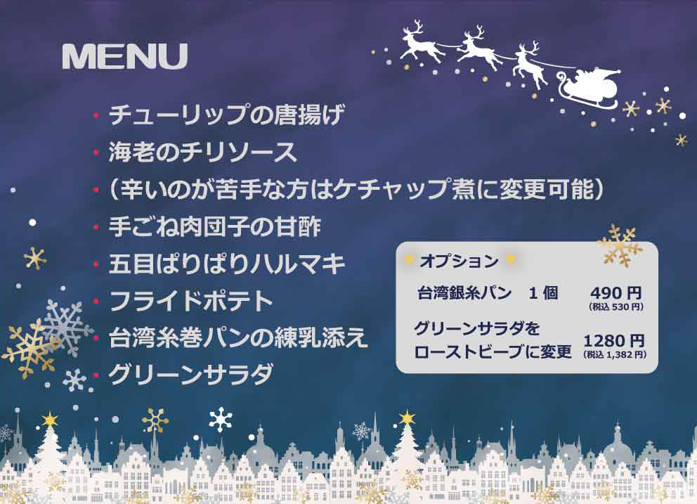 オプションで 台湾銀糸パンの追加・ローストビーブに変更承ります。