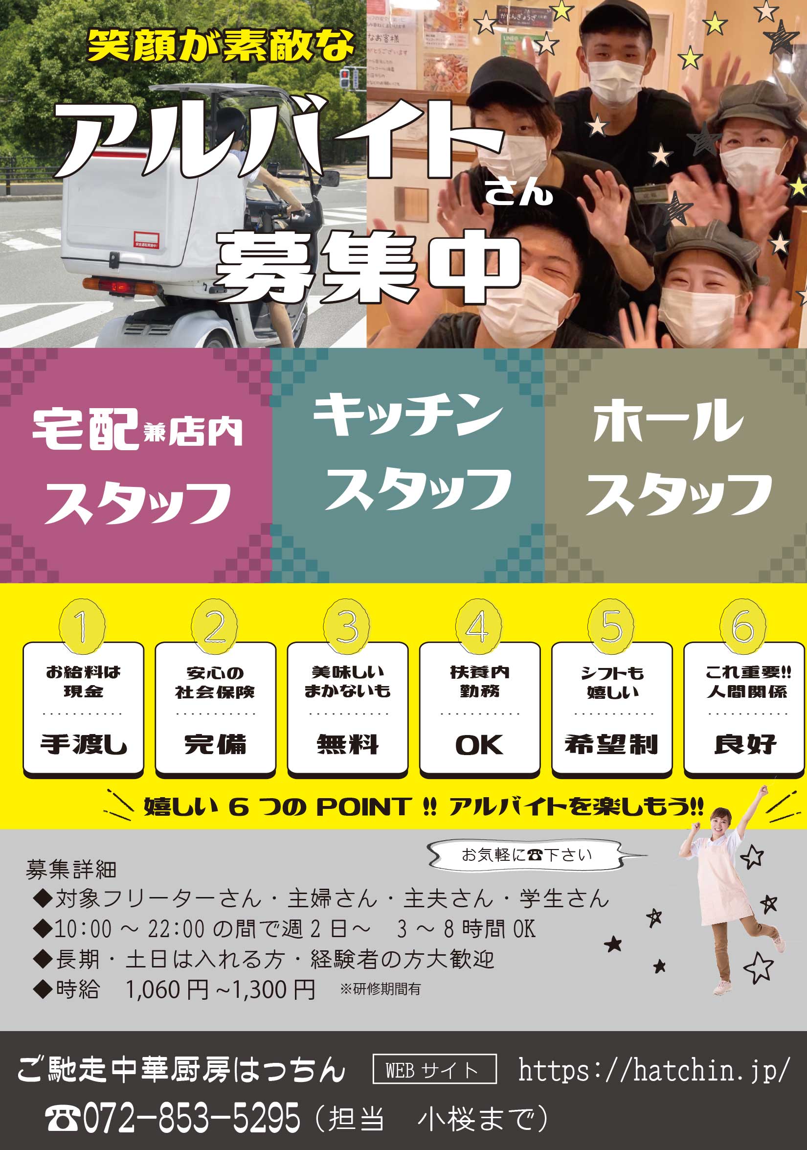はっちんでは笑顔の素敵な【宅配&店内スタッフさん】を募集しております
